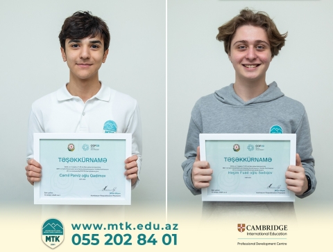 Ötən ilin noyabr ayında ölkəmizdə keçirilən COP29 İqlim Dəyişikliyi Konfransında könüllü olaraq fəallıq göstərən şagirdlərimizə Azərbaycan Respublikasının Prezidenti cənab İlham Əliyev tərəfindən imzalanmış təşəkkürnamə sertifikatları təqdim edilmişdir.