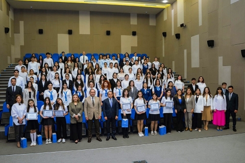 Azərbaycan Respublikasının Prezidenti yanında Vətəndaşlara Xidmət və Sosial İnnovasiyalar üzrə Dövlət Agentliyi və Heydər Əliyev adına Müasir Təhsil Kompleksinin birgə əməkdaşlığı çərçivəsində Ümummilli Lider Heydər Əliyevin anadan olmasının ildönümünə həsr olunmuş “Ulu Öndərin Yolu ilə” mövzusunda esse müsabiqəsi keçirilmişdir. Layihənin əsas məqsədi, Ümummilli Lider Heydər Əliyevin müdrik irsinin, dövlətçilik fəlsəfəsinin və tarixi xidmətlərinin gənc nəsil tərəfindən dərindən öyrənilməsinə, mənimsənilməsinə və yaradıcı şəkildə ifadə olunmasına şərait yaratmaqdır. Mərasimdə Dövlət Agentliyinin sədri Ulvi Mehdiyev, Heydər Əliyev adına Müasir Təhsil Kompleksinin Baş İcraçı Direktoru Tural Abbasov, şagirdlər, ASAN Könüllüləri və digər qonaqlar iştirak ediblər. Müsabiqənin mükafatlandırma mərasimi 7 saylı Bakı “ASAN xidmət” mərkəzində təşkil olunmuş, layihənin yekun mərhələsi olaraq fərqlənən iştirakçılar sertifikat və xatirə hədiyyələri ilə təltif edilmişdir. Bu layihənin ərsəyə gəlməsində göstərdikləri əməkdaşlıq və dəstəyə görə Azərbaycan Respublikasının Prezidenti yanında Vətəndaşlara Xidmət və Sosial İnnovasiyalar üzrə Dövlət Agentliyinin sədri Ülvi Mehdiyevə xüsusi təşəkkürümüzü bildiririk.