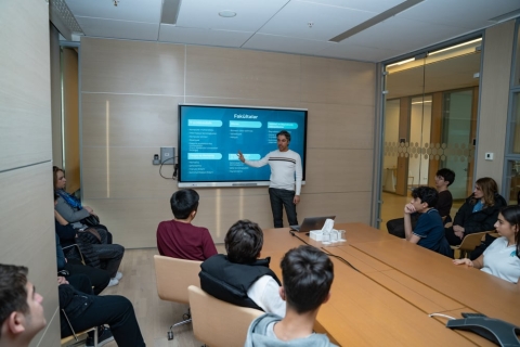 During the visit, Elshad Goyushov, Undergraduate Admissions Counselor at ADA University, delivered an informative presentation and answered students’ questions about application procedures and academic programmes. The session helped students gain a clearer understanding of their future university pathways.