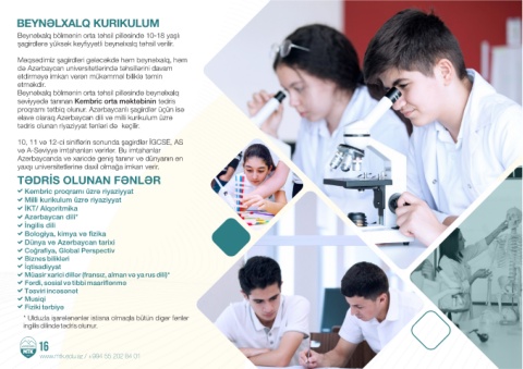şagirdlərə yüksək keyfiyyətli beynəlxalq təhsil verilir.