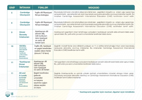 8 Cambridge İngilis dili Riyaziyyat Beynəlxalq bölmənin orta təhsil pilləsi üzrə təhsil alan şagirdlərin inkişafını və onların uğur qazanmaq