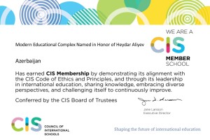 We are delighted to share the exciting news that The Modern Educational Complex Named in Honour of Heydar Aliyev (MTK) has officially become a Council of International Schools (CIS) member! This achievement marks a significant milestone in our commitment to providing high-quality international education and continuously enhancing our standards.
